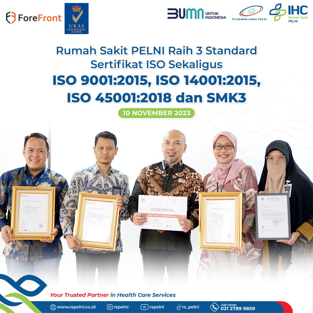 RS PELNI resmi memperoleh tiga sertifikat ISO berstandar inernasional
