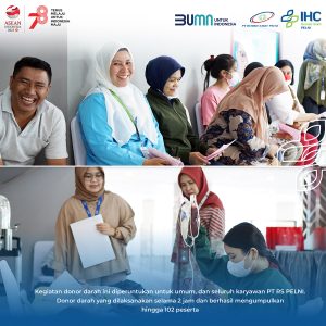 Jumat 18 Agustus 2023 kegiatan donor darah yang diselenggarakan di PT Rumah Sakit PELNI sebagai rangkaian kegiatan 17 agustus 2023 . kegiatan ini diperuntukan untuk umum, dan seluruh karyawan PT RS PELNI. Donor darah yang dilaksanakan selama 2 jam dan berhasil mengumpulkan hingga 102 peserta dengan yang berhasil donor 83 kantong, dimana kegiatan ini berlokasi di lt 2 gd merial Tower RS PELNI. Melalui kegiatan ini PT RS PELNI berharap dapat memberikan manfaat kepada banyak orang yang sedang membutuhkan donor darah.